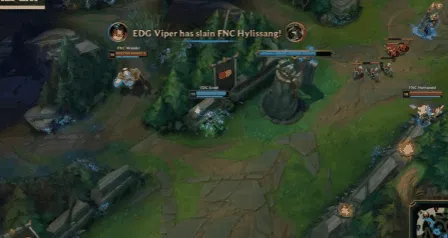 1分钟,FNC入侵野区无果,EDG顺势反打完成一波0换2团战,希维尔拿下双杀。