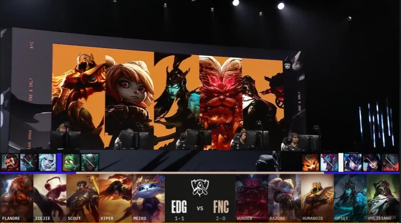 EDG选用:Flandre酒桶、Jiejie盲僧、Scout维克托、Viper希维尔、Meiko猫咪