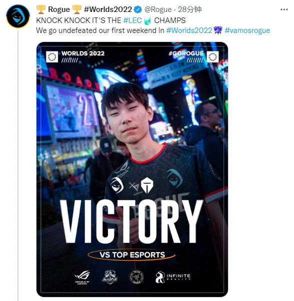 RGE中单:看看看看,这就是LEC冠军!我们世界赛小组赛首周保持不败!