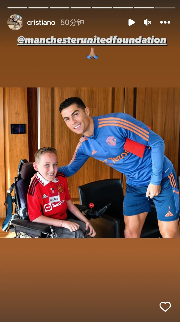 C罗在个人社交平台也晒出了自己与小球迷亲切互动的照片,照片中C罗不仅与小球迷握手拥抱,向他们赠予队旗,并且还逐一签名合影。场面十分暖心。