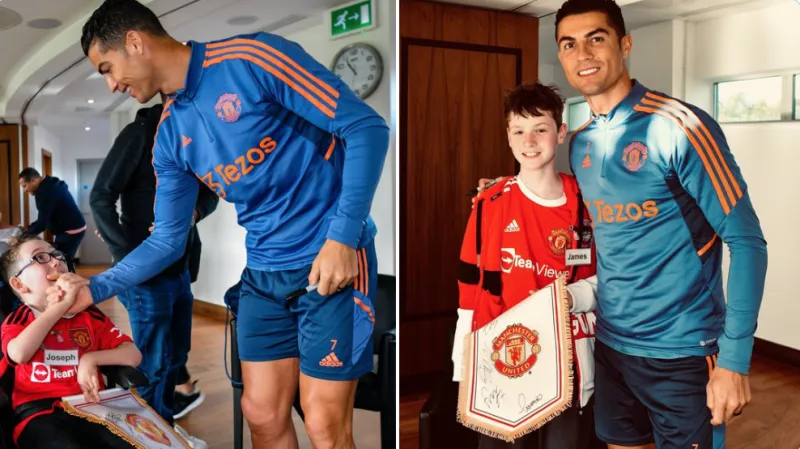虎扑10月11日讯 周一,曼联基金会组织了曼联梦想日活动。一些因病导致生活有障碍的曼联小球迷获得了与偶像C罗亲密接触的机会。