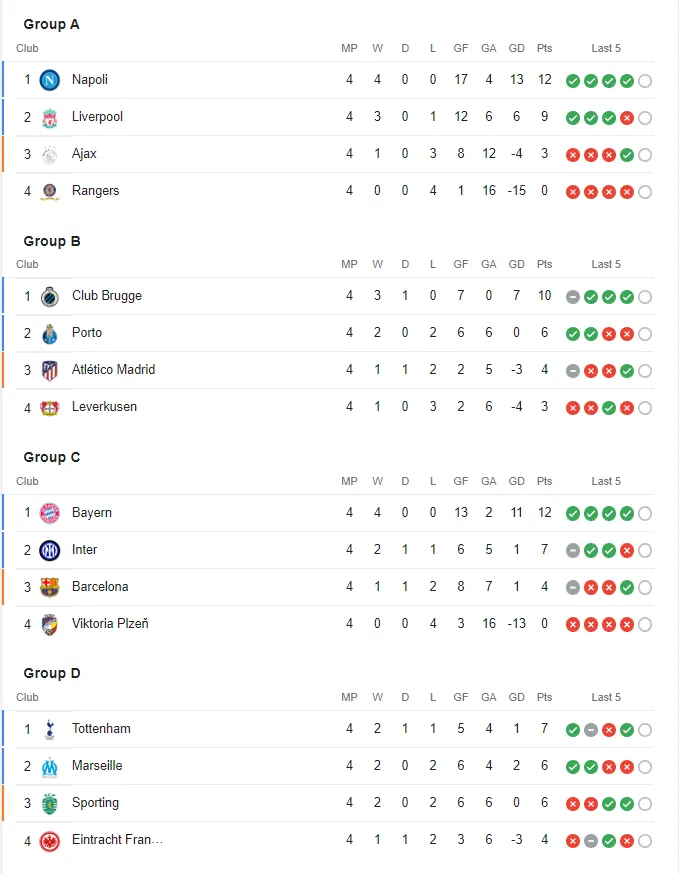 虎扑10月12日讯 欧冠小组赛第4轮结束,目前已经有5支球队提前出线,分别是那不勒斯、布鲁日、拜仁慕尼黑、皇家马德里和曼城。U7P拜客生活常识网
