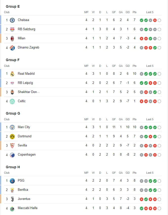 H组中,巴黎圣日耳曼与本菲卡同积8分,分别排在小组第一和第二位,尤文图斯与海法马卡比同积3分,排名第三和第四位。 U7P拜客生活常识网