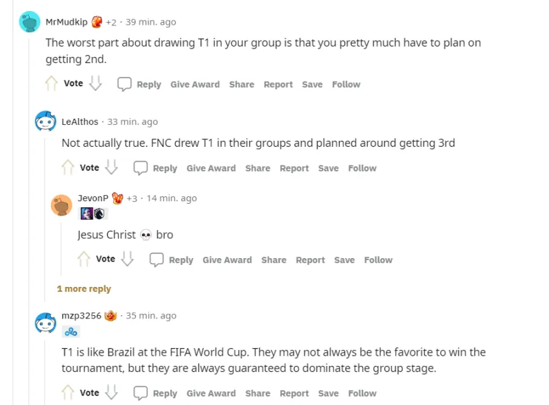最糟糕的是跟T1分到一个小组,你就得考虑一下如何拿到小组第二。