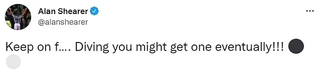 纽卡斯尔传奇希勒在赛后不久就在社交媒体上给这位前多特蒙德边锋发了一条信息,希勒在推特上告诉曼联25号:“继续******跳水,你最终可能会得到一个裁判的判罚的!!!”
