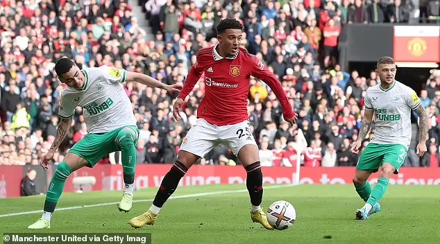 虎扑10月17日讯 英格兰国脚,曼联边锋桑乔昨晚在禁区内被喜鹊中场肖恩-朗斯塔夫铲倒,而主裁判并不认为这是犯规。