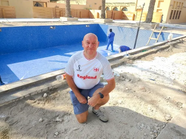 太阳报见证了民工们穿着工作服,顶着35度的高温,为三狮军团的明星们建造游泳池,而泳池吧和更衣室仍在用光秃秃的挡风砖进行砌造。