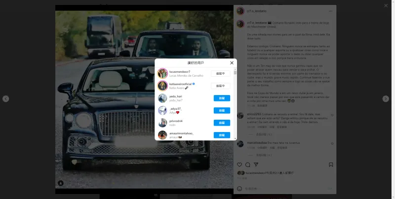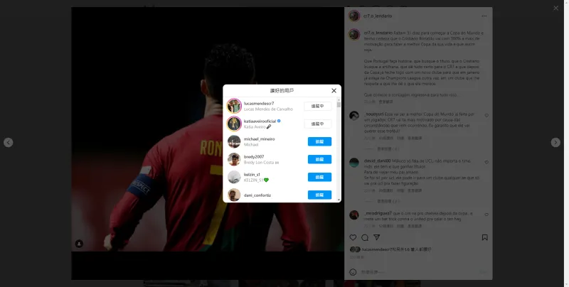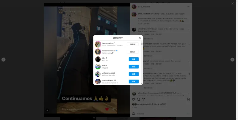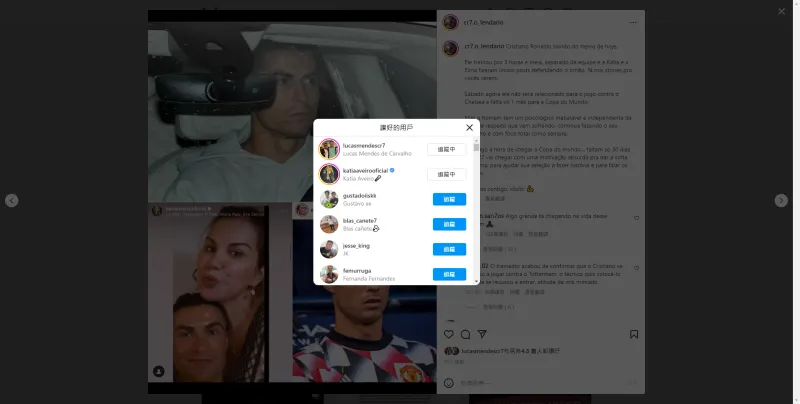 C罗的二姐Katia Aveiro点赞了上述每一条Ins,没有例外。