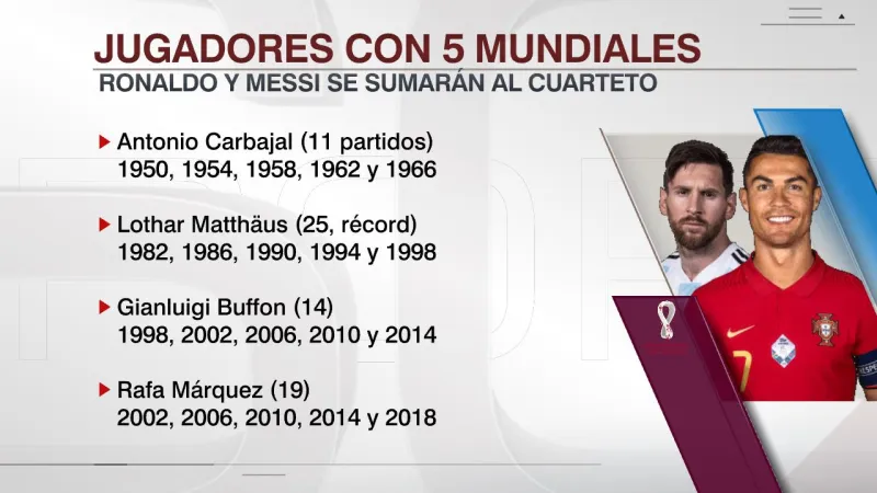 这样一来,C罗、梅西2人均有望第5次征战世界杯赛场,并成为第五位、第六位达成这一成就的球员。