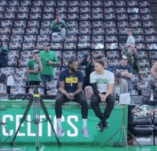 比赛开始前,格里芬与小乔丹同坐在现场记分台上聊天。