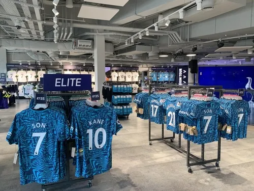 挂在墙上的24件热刺球员球衣中,位于C位的是孙兴慜,其他的热销球衣分别属于凯恩、库卢塞夫斯基、理查利森和罗梅罗。