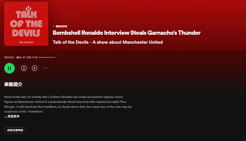 虎扑11月14日讯 The Athletic UK三位曼联方面记者Andy Mitten(米顿叔)、Laurie Whitwell(T1)和Carl Anka(传记作者)录制了最新一期的Talk of Devils,这一期节目自然开篇就是C罗事件的各种反应。