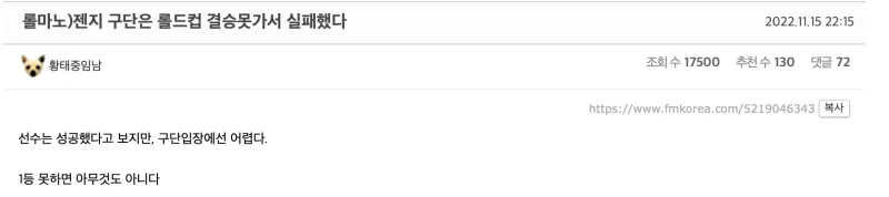 “俱乐部角度来看,GEN今年没能晋级世界赛决赛,是失败的一年。虽然选手们可能觉得是成功的,但是在俱乐部立场来看很难,拿不到第一名就什么都不是。”