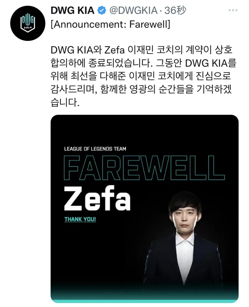[情报站]dk官宣:双方商议后,我们终止和daeny监督,zefa教练的合同