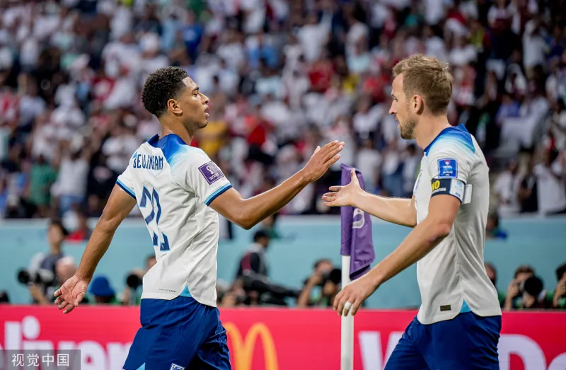 虎扑11月21日讯 北京时间11月21日21:00,世界杯B组小组赛在哈利法国际体育场打响,英格兰对阵伊朗。上半场,贝兰万德伤退,马奎尔头球中框,卢克-肖助攻贝林厄姆头球破门首开记录,马奎尔头球摆渡助攻萨卡凌空撩射破门,补时阶段凯恩传中助攻斯特林扩大领先;下半场,斯特林助攻萨卡破门完成梅开二度,随后塔雷米爆射破门扳回一球,拉什福德替补登场不到一分钟接凯恩传球第一次触球即完成破门,威尔逊倒三角助攻格拉利什推射空门锦上添花,补时阶段最后时刻斯通斯送点、塔雷米主罚点球破门完成双响。最终,英格兰6-2战胜了伊朗取得开门红。