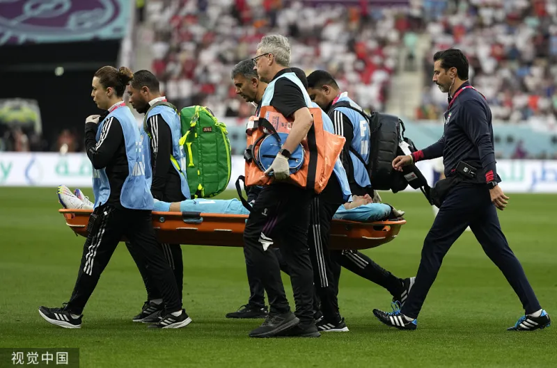 8’贝兰万德出击与后防队友侯赛尼相撞鼻子受伤,长时间治疗后无法坚持被换下。