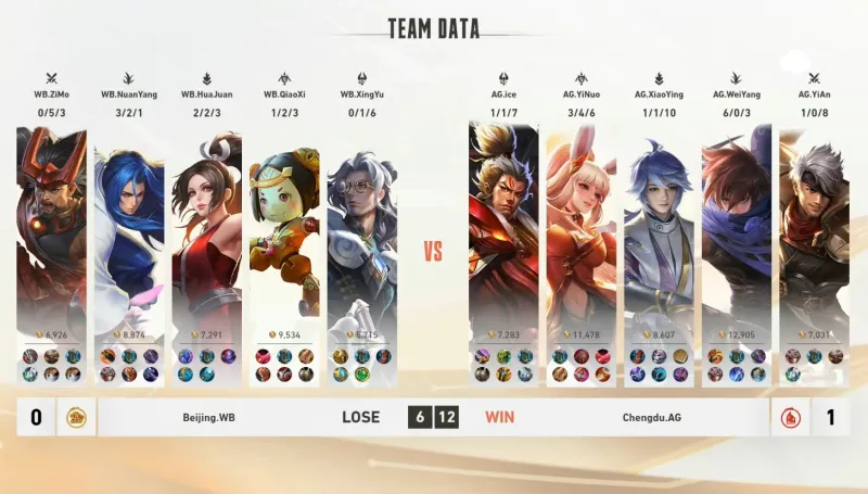 Game1:蓝色方北京WB 红色方成都AG超玩会