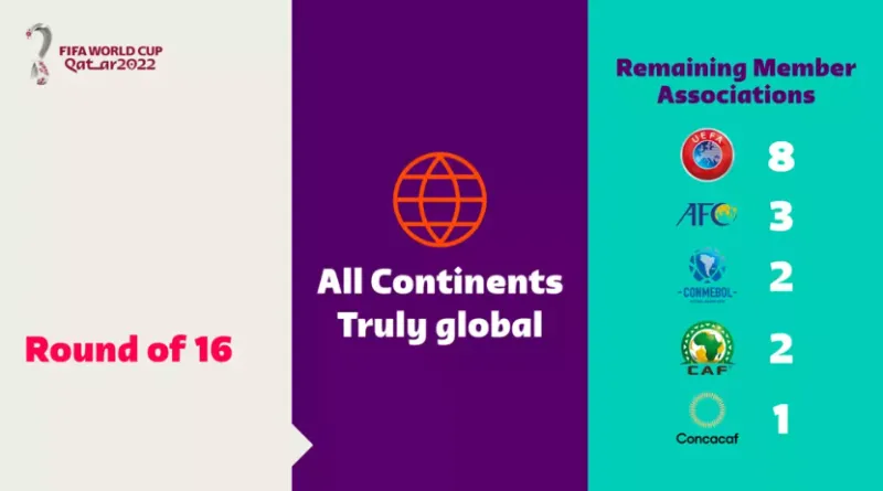 本次世界杯也是历史上第一次有各大洲的球队晋级16强,分别是:欧洲8支球队、亚洲3支球队、南美2支球队、非洲2支球队、1支球队来自中美洲和北美的团队。三支亚冠球队晋级16强,刷新纪录。世界杯相关记录包括斯蒂芬妮-弗拉帕特成为首位执法男足世界杯的女裁判、C罗成为首位五届世界杯进球的球员、英格兰对美国的比赛创造男足最高收视率记录在美国。