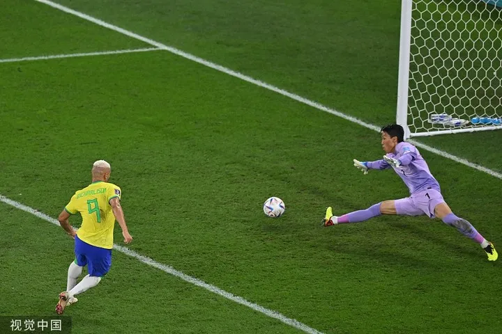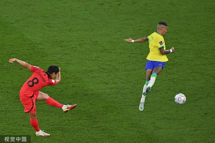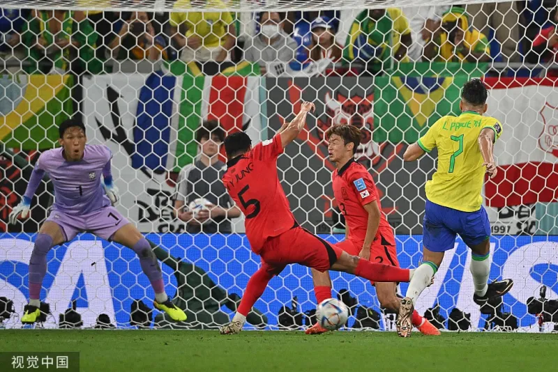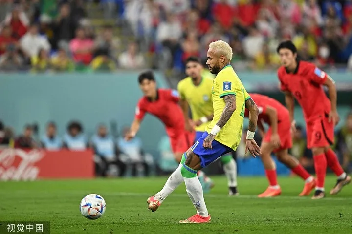 虎扑12月06日讯 虎扑12月06日讯 北京时间2022年12月06日03:00,巴西在世界杯1/8决赛迎战韩国,上半场维尼修斯兜射破门,内马尔罚中点球,黄喜灿远射被阿利森扑出,里沙利松轻松推射破门,帕奎塔中路跟进射门,下半场孙兴慜打门被扑,拉菲尼亚连续打门被扑,白昇浩远射世界波扳回一球。最终巴西4-1轻松战胜韩国队,挺进八强。