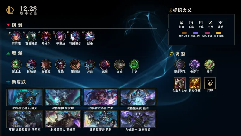 虎扑12月08日讯 LOL将在12月8日凌晨1点开始全区停机维护(请注意:12月8日0点将关闭排位赛入口,不会影响正在进行中的排位赛)发布12.23版本,预计停机时间为1:00-12:00 。对于在停机期间结束的活动,其实际结束时间也将提前至停机维护开始时,敬请留意