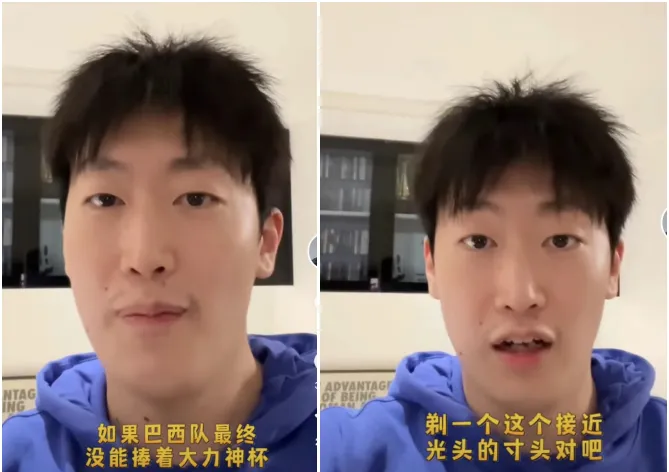 此前管泽元曾表示如果巴西队最终没能捧杯他就剃最接近光头的寸头。