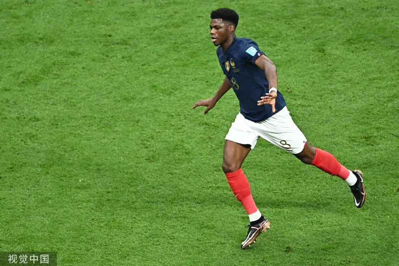 17’首开记录!萨卡后场被断,姆巴佩左路带球反击后连续传导,琼阿梅尼跟上突施冷箭低射破门!法国1-0英格兰!