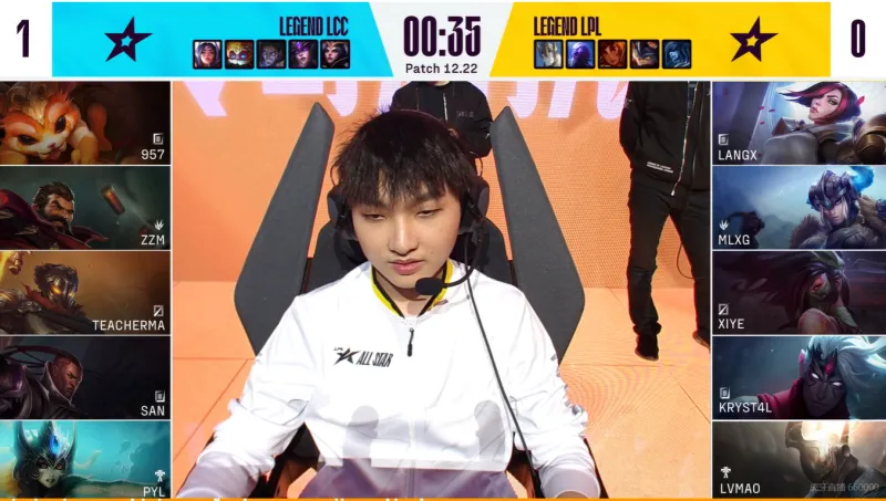 LPL选用:Langx剑姬、MLXG猪妹、xiye阿卡丽、kRYST4L韦鲁斯、LvMao潘森