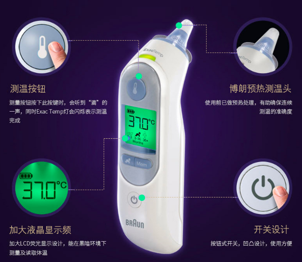 博朗的这款耳温枪,一秒就能快速测温,测温精准,新手妈妈必备。不怕宝宝因为生病状态不佳,不愿意配合测量体温。
