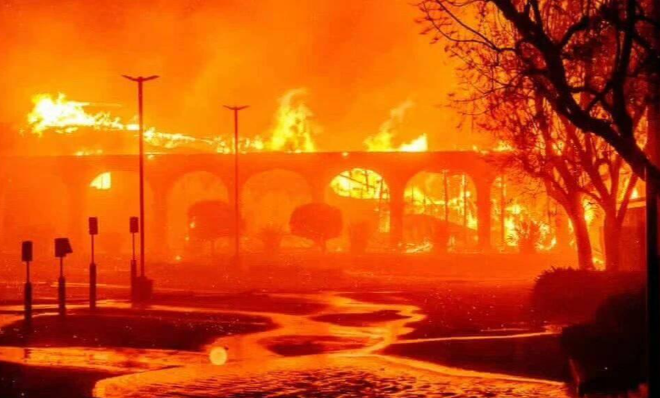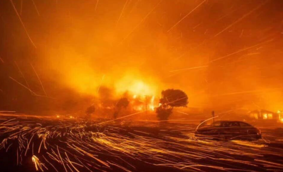 从1984年到今天,加州一共爆发了423起森林火灾,也就是说每年爆发至少10次,这里仅指面积超过40平方公里的大型火灾,如果把中小型的都算上,那轻松超过400次。几乎是时时刻刻都在爆发火灾,天天烧,就没有停息过,美国都懒得管。以往的火灾,美国就让山火随便烧,烧到最后停下来,但是这一次非常不幸,刚好遭遇了魔鬼之风,也就是10年来最强劲的圣塔安娜风登陆加州,冬天的加州本就干燥,这种天气别说大火,一点火星都容易火光冲天。于是在强劲风力的影响下,烈焰以平时10倍的速度,超过每小时100英里席卷而来,所到之处快速燃尽一切,将所有的建筑物和森林全部吞噬.......加上美国的房屋基本都是木质结构,那瞬间就渣都不剩了。洛杉矶几乎被付之一炬,数千栋建筑物被毁灭,近20万人无家可归,被迫撤离,无数居民区成为了瓦砾,看起来比加沙还要凄惨多了。有钱人的的豪宅同样也未能幸免,很多美国富豪喜欢在加州的森林地带修建房屋,比如NBA很多球员的家园在此次山火中被付之一炬,伦纳德价值1710万美元的别墅、乔治价值1600万美元的豪宅被焚烧殆尽,威少、杜兰特、雷迪克在洛杉矶的住宅无一幸免.......而损失最大的就是伦纳德,他在加州有三处房产,都要没了。洛杉矶开始了大逃亡模式,山火逼近后十几万人一起跑路,导致大量的车辆拥堵在路上寸步难行,而身后的山火夹杂着飓风逼近速度越来越快。没办法,很多人只好弃车逃跑,结果成千上万的汽车就给堵在关键的通道上,消防车过来一看傻眼了,蔓延几公里的必经之路上全是抛锚的车辆,根本就过不去。也没啥用,因为这次的风势太大了,大到可以把飞机给吹下来,飞机飞上去根本控制不了.......这还不是最关键的,最关键的是洛杉矶现在没水....消防栓里根本就喷不出水来,你说这多让人绝望,那还救个毛线的火?xYI拜客生活常识网