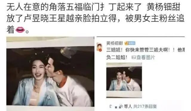最近于正狂吹的新剧《五福临门》播出到现在,并没有他预期中的爆火,连热剧都算不上,但演员们在宣传营销方面倒是很卖力,特别是卢昱晓和王星越,两人不仅互动频繁还被其他演员(剧中饰演女主小妹妹的演员黄杨钿甜)晒出二人拍摄亲脸的亲密合照。CP粉因此挺上头觉得他俩很搭,不过唯粉却觉得非常不合适,甚至还有男方粉丝吐槽这对cp一直都是卢昱晓倒贴男演员。