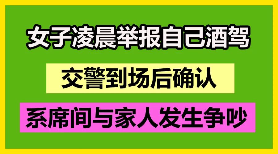 安徽合肥的王女士,竟然在凌晨两点多报警举报,称自己酒后驾车!请求查处!啊???大过年的放爆竹能理解,玩“自爆”是什么个情况???
