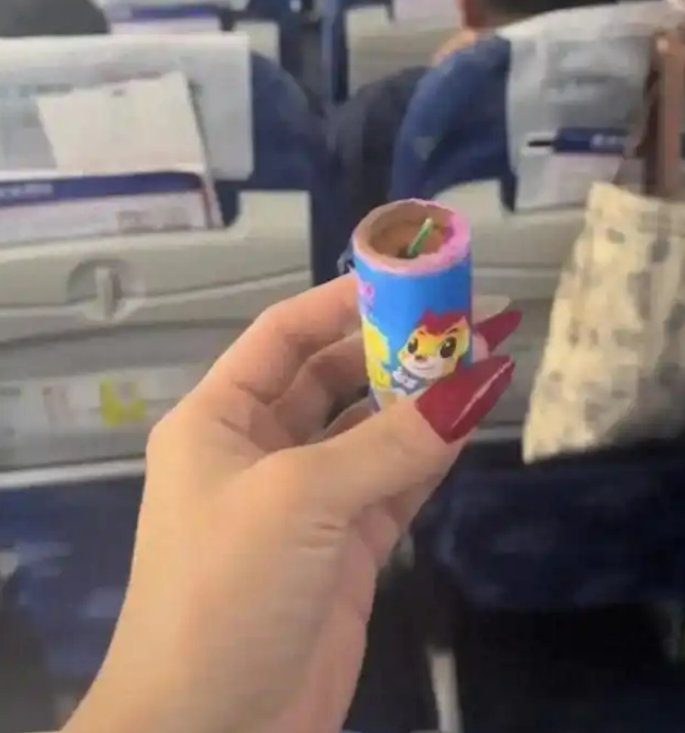 有位网友在坐飞机的时候,竟然在航班的座位下面,捡到了一个“鞭炮”。r2G拜客生活常识网