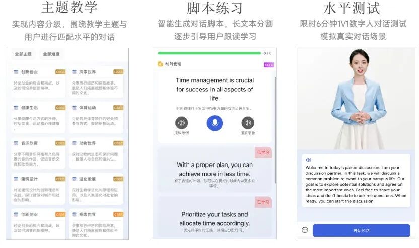 基于DeepSeek动态适配学生水平,主题对话、脚本练习等功能,与你一对一学外语。
